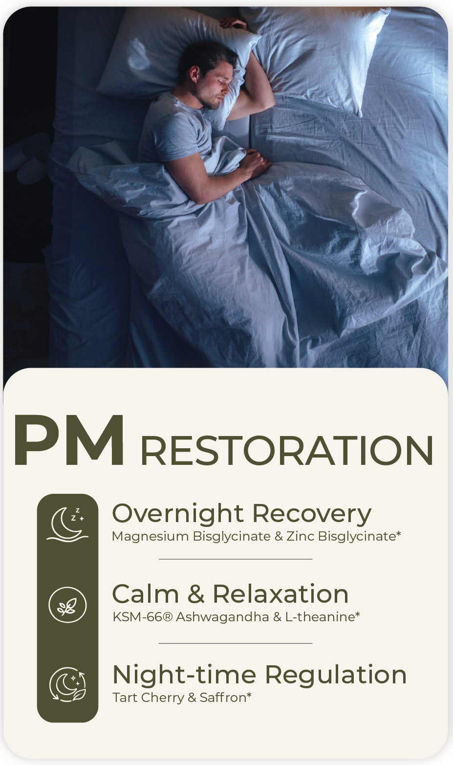 Each phase is formulated around specific physiological priorities—daytime performance and nighttime restoration—using bioavailable forms and clinically studied compounds.